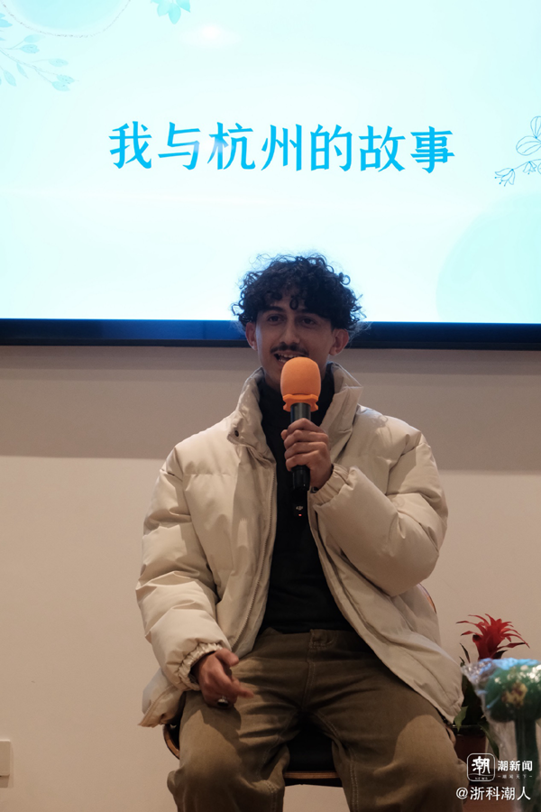 在“中外青年说”交流环节,留学生们踊跃发言,分享自己与杭州结缘的故事。我院商务汉语253班来自也门的留学生力勇动情地说:“来到杭州这座美丽的城市学习我特别开心,这里的风景很漂亮,老师和同学还有杭州的朋友们都特别友善,我很高兴能参加这次AI普法体验活动,我爱杭州,我爱中国。”他真挚的话语引起了在场青年的强烈共鸣。