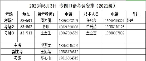 2、6月3日专四口试安排