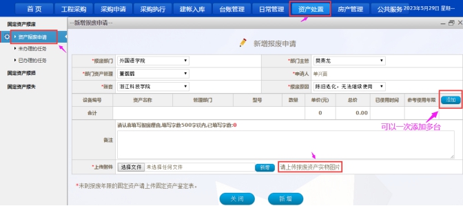 本年度固定资产报废流程已开放,请各位老师,清理自己名下资产,不再需要使用且已到年限的资产,均可申请报废。尤其是今年暑假即将为301、303、312三间办公室更换办公桌椅,相关老师可将旧桌椅申请报废(操作中如有疑问,可钉钉私信联系单兴苗)。
