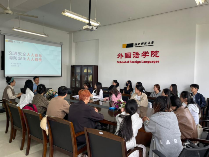 4月26日下午,外国语学院于A3-306举办了一场主题为“交通安全人人参与 消防安全人人有责”的校园安全讲座。本次讲座特邀学校保卫处副处长宋水均老师主讲,旨在进一步提升学院同学的安全防范意识与应急处理能力。讲座由学院党委副书记方小卿老师主持,辅导员、英语专业班干部和寝室长参加。讲座中,宋老师以其丰富的安全管理工作经验,深入浅出地阐述了交通安全与消防安全的重要性。详细解读了交通法规关键要点,强调了遵守交通...